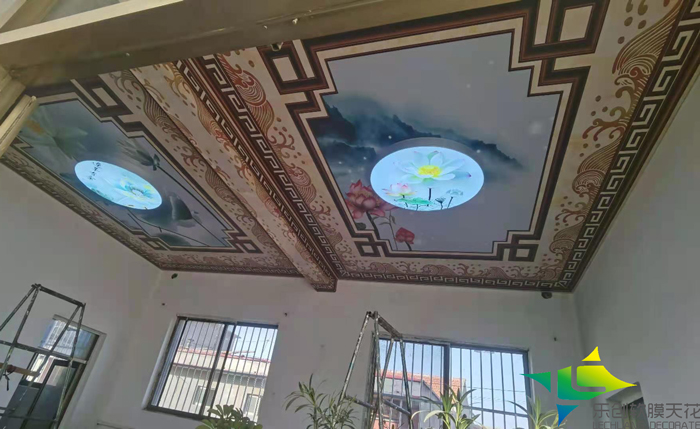 熱烈祝賀我公司泰安市寧陽家裝軟膜天花吊頂吸頂燈箱安裝順利完工,此家裝整體采用軟膜天花進行吊頂裝飾,主題風格為中式荷花主題,吸頂燈采用我公司鋁材折彎圓形制作,燈箱畫面也為荷花,契合主題風格,安裝效果得到了業(yè)主的一致好評,在此感謝客戶對樂創(chuàng)品牌吊頂天花軟膜的認可。 實際安裝效果如下圖: